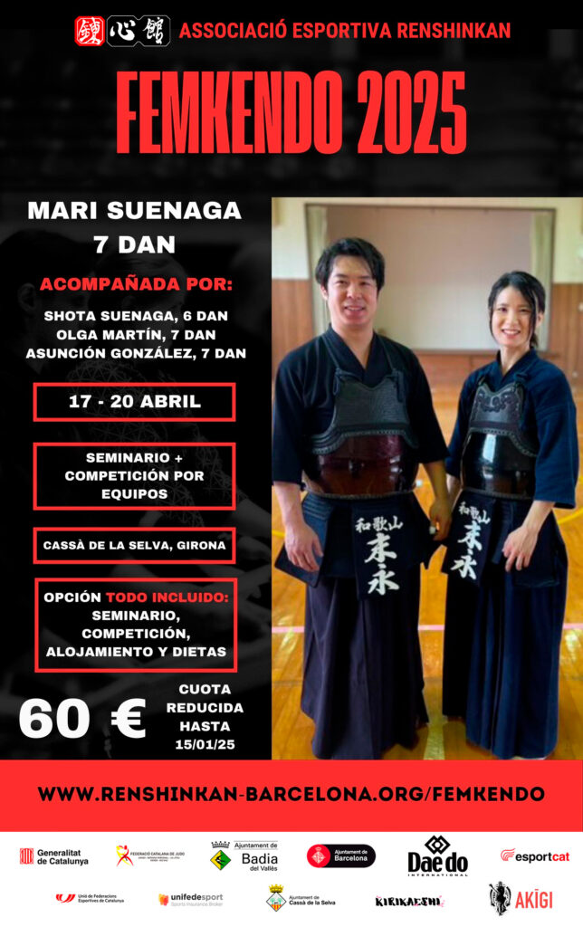 Nuestros amigos de Renshinkan Kendo Club nos comunican la próxima edición del seminario Femkendo, que se celebrará del 17 al 20 de abril en Cassà de la Selva, Gerona.